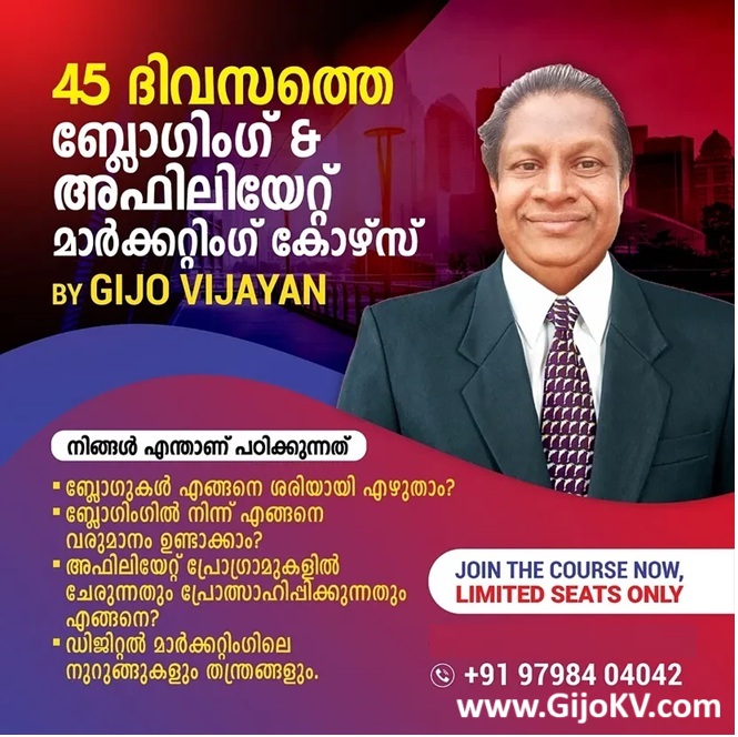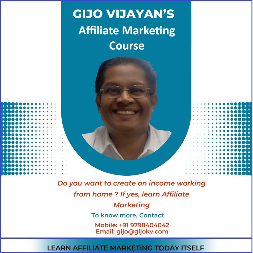 If you want to learn Affiliate marketing, I have created ” Gijo Vijayan’s Affiliate Marketing Course”.